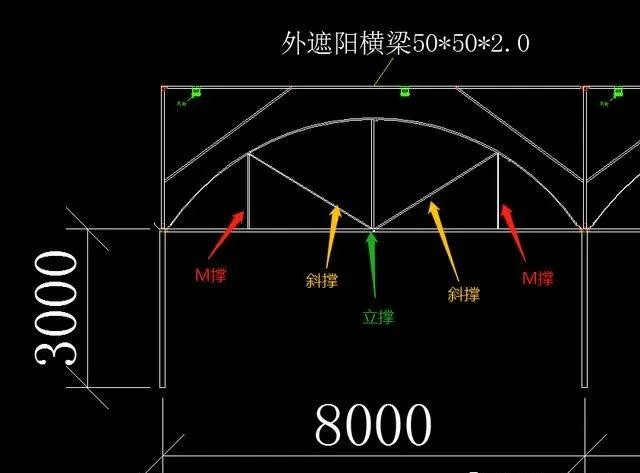 溫室大棚天溝上部的結(jié)構(gòu)為半圓拱型結(jié)構(gòu),我們常見的拱形組件是圓拱和立撐桿以及斜撐桿。如果您考慮到造價(jià)的經(jīng)濟(jì)性房,不想把拱桿以及橫梁的型號(hào)增加太多的話,那您可以增加一套M撐桿。M撐桿是位于斜撐一側(cè)的一只小立柱,左右各有一只。其作用為加強(qiáng)拱面的支撐性,其長(zhǎng)度很短,增加的造價(jià)很少,但是起到的作用很大。不僅能提高其抗壓性,還能提高其抗風(fēng)性能。