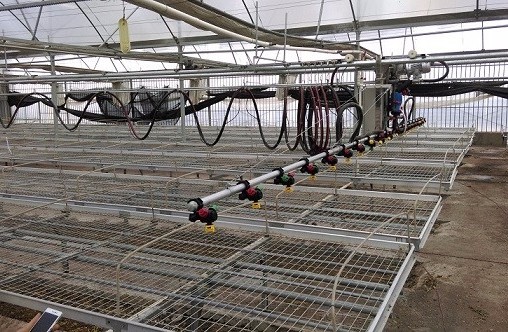 因?yàn)闇厥掖笈镏皇且粋(gè)建筑,內(nèi)部還需要根據(jù)不同的用途建造不同的資材。比如說育苗溫室都會(huì)使用到手搖式移動(dòng)苗床和自走式噴灌水車。無土栽培溫室都會(huì)用到種植支架、種植槽、基質(zhì)袋等。